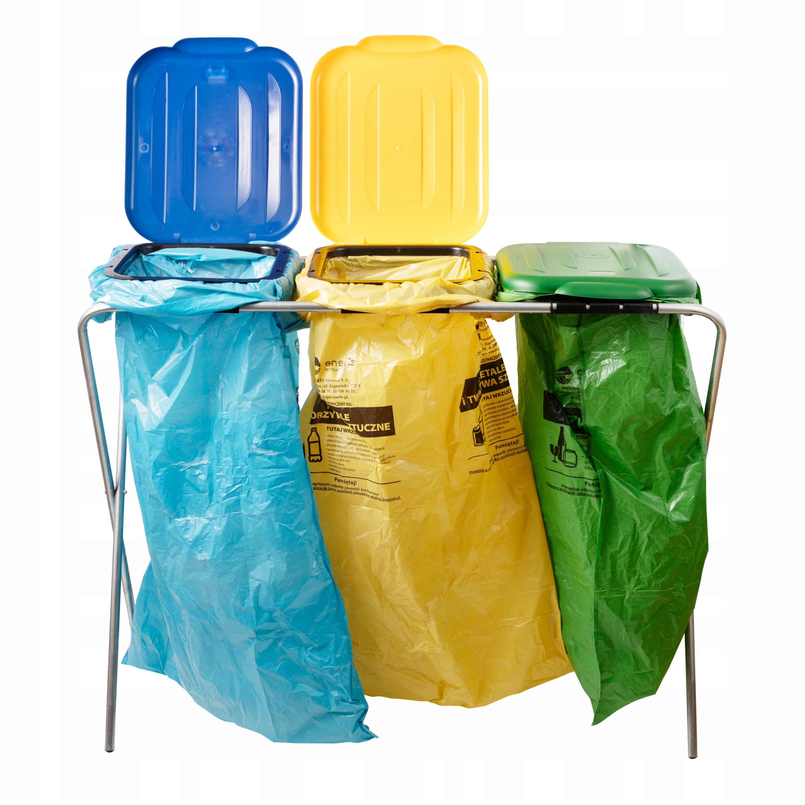 Kolory kosza zgodne z przyjętymi przez EU oznaczeniami. (Zielony, Niebieski i Żółty).